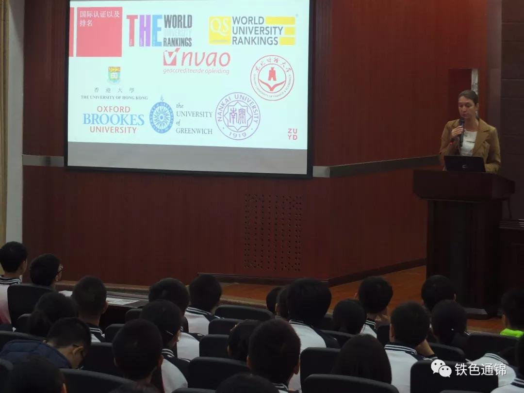 ▲荷兰南方应用科技大学国际学生招生主管海迪 克努(Hilde Krul)向学生介绍