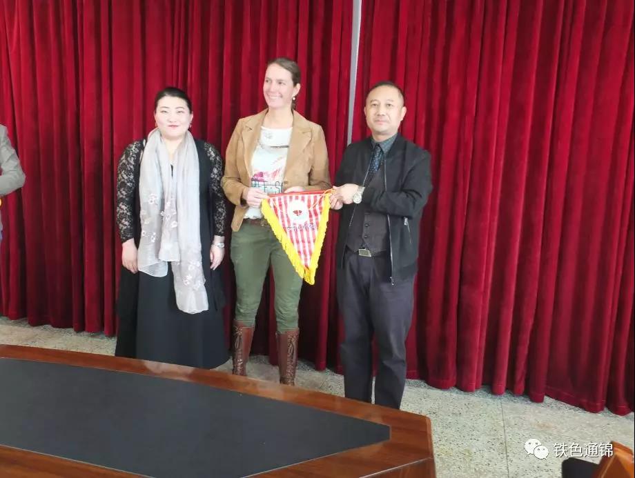 ▲谭校长向荷兰马斯特里赫特大学市场推广活动专员温蒂 博肯赠送校旗