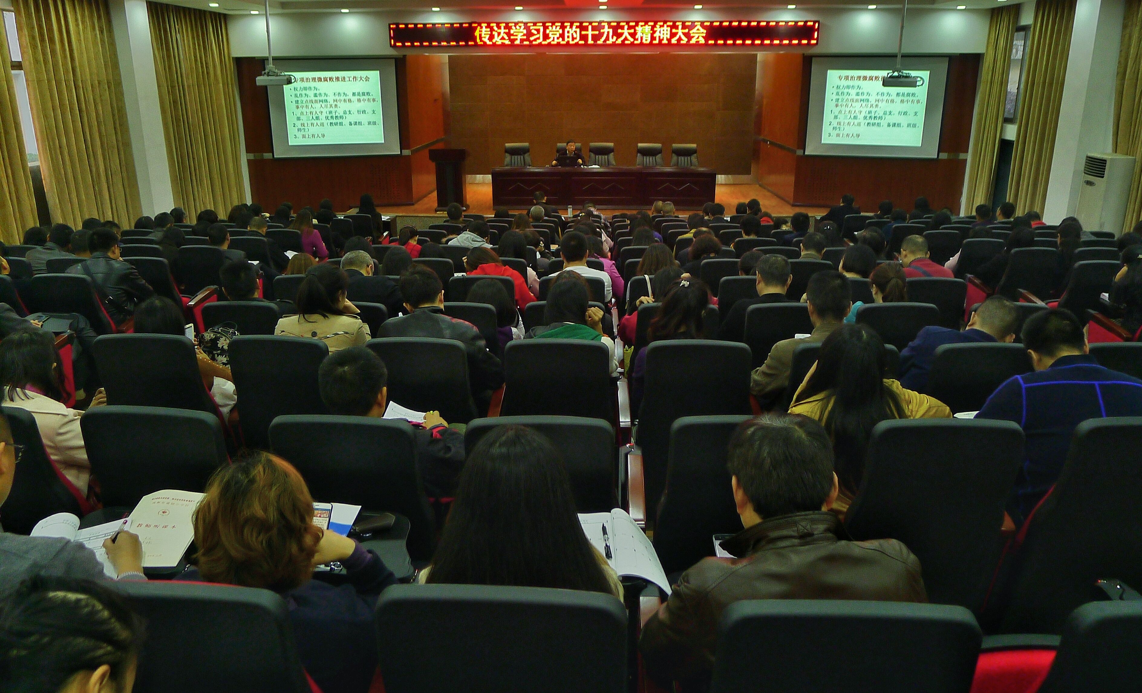 2017年11月7日,学校召开全体教职工大会,党总支书记、副校长白钟明同志传达区教育局学习党的十九大精神专题会议精神,系统宣讲十九大精神,根据学校总支和班子的决议,布置学校宣传学习十九大精神的具体安排,强调全体党员做好表率,全体教职工认真学习、深入领会、大力宣传、全面贯彻十九大精神,是当前和今后一个时期学校的首要政治任务。号召大家立足岗位,掀起学习贯彻十九大精神热潮,干群一起,师生同行,将思想认识统一到十九大精神上来,让十九大精神真正进校园、进课堂、进师生头脑,内化为师生的思想和行动,共谋学校教育教学新发展。