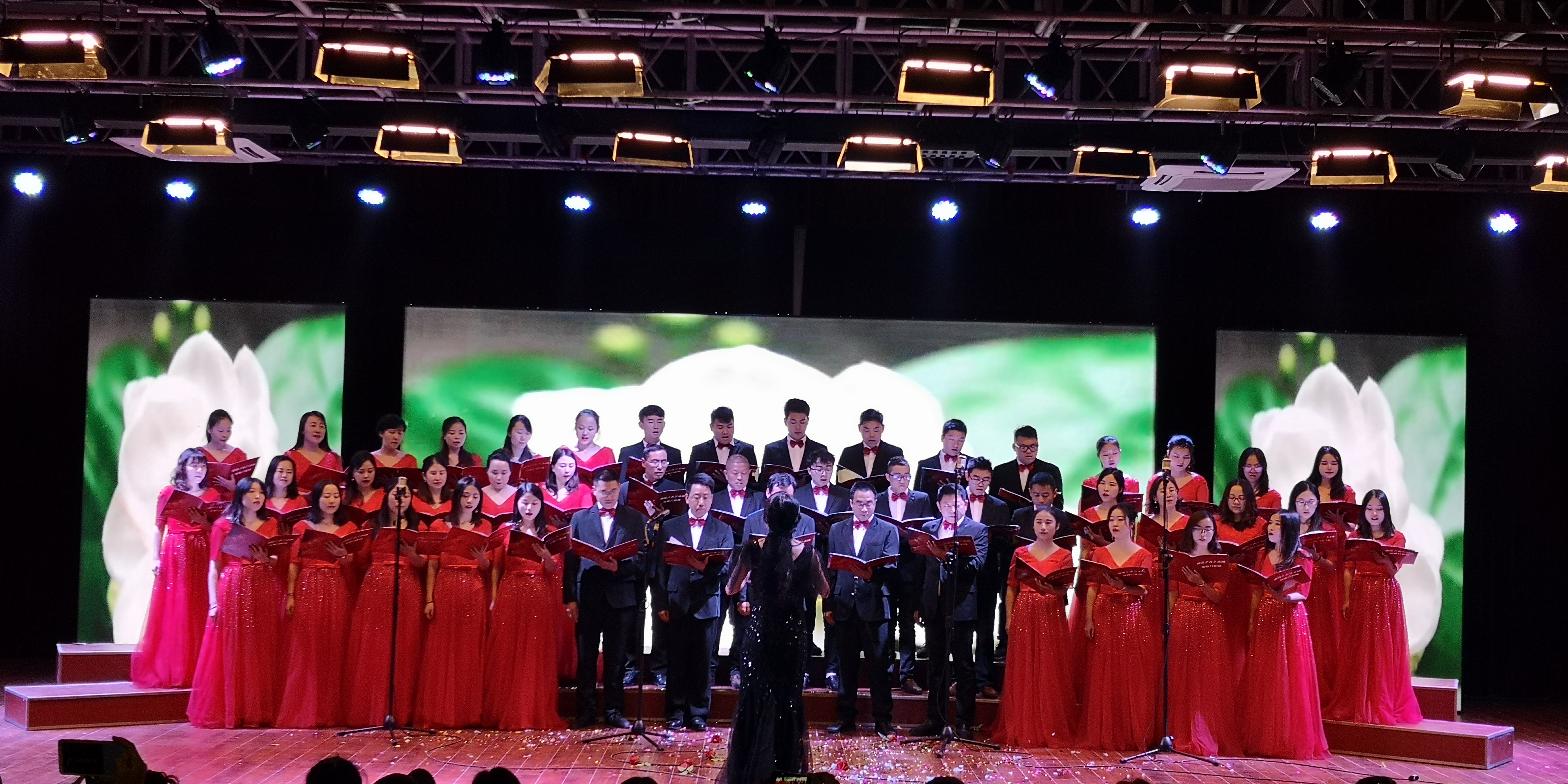 我们最可爱的人——老师们登场了,他们用《梨花又开放》和《向往》向全校同学展示了老师的魅力与风采。