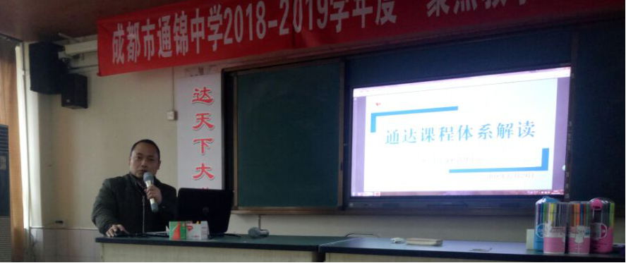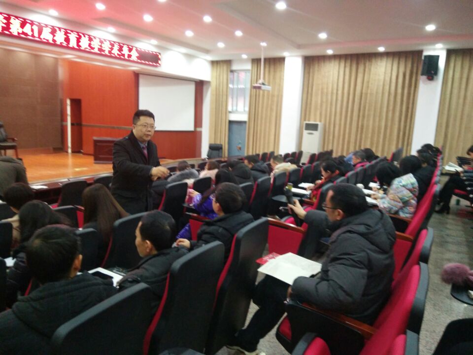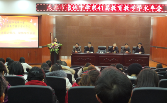 谭六三校长做了题为《奠基人生 设计未来——写在通锦中学教育教学第41届学术年会》的专题讲座。谭校长极具教育家情怀地从回归教育本真、创新、生涯、面向明天四个方面,结合当今教育教学改革和我校实际等对构建通达课程体系、聚焦学生发展进行了框架搭建和梳理;谭校长就人才培养的方向、模式、方法,就创新教育的教与学、完善“五课”、深化信息技术与教育教学的深度融合进行了阐述。对生涯教育的必要性、实践性以及导师制、学长制、学分制、走班制、书院制、一生一表,学校的整体规划、分步实施、师生结伴同行、通情致和达德立人等做了充分的诠释和剖析。高瞻远瞩,为通达课程体系的构建,学生发展的聚焦做了美好的展望,对全校师生共同努力和主动参与寄予殷切期望;专题讲座结束时,谭校长给全校教职工推荐了改革开放40年来对教育有深刻影响的40本书目,祝愿全体教职工新年快乐、工作顺利。