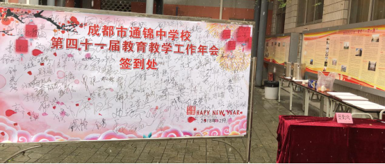 2018年12月29日,成都市通锦中学教育教学第41届“构建通达课程,聚焦学生发展”主题学术年会在今年第一场瑞雪中隆重召开。成都市教育局宣教处覃珺调研员、金牛区教育局刘启平副局长、金牛实验中学校长刘仲文、成都市第八中学徐光杰校长等领导出席本届年会,友好学校代表、合作单位代表以及技术支持单位代表等参加了此次年会,并在签名墙留下了他们对通锦的祝贺、祝福。