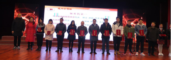 最后,大会对本年度教育教学工作成果进行了盘点和总结,对各方面表现突出的教职员工进行了表彰,大会在颁奖欢快的音乐中圆满落幕。