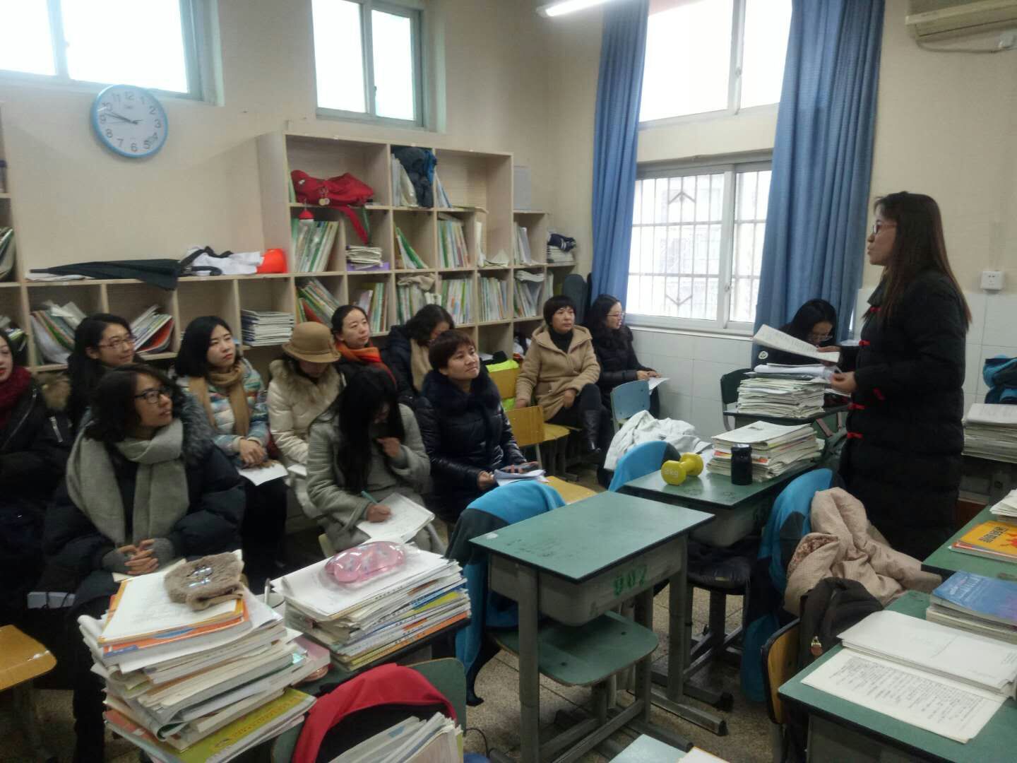 选修课分组展示——胡睿:艺术课程《色彩与生活 》体育组、生物组老师在专心听课