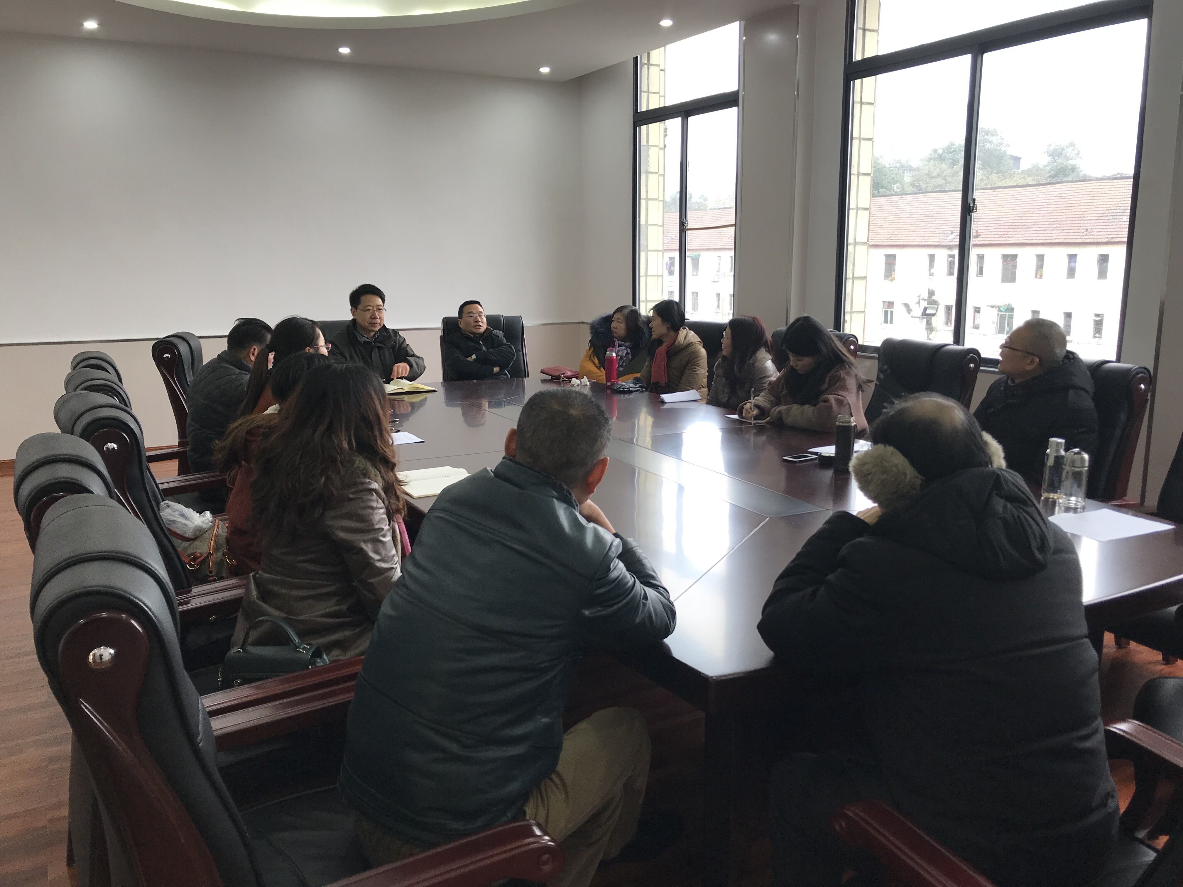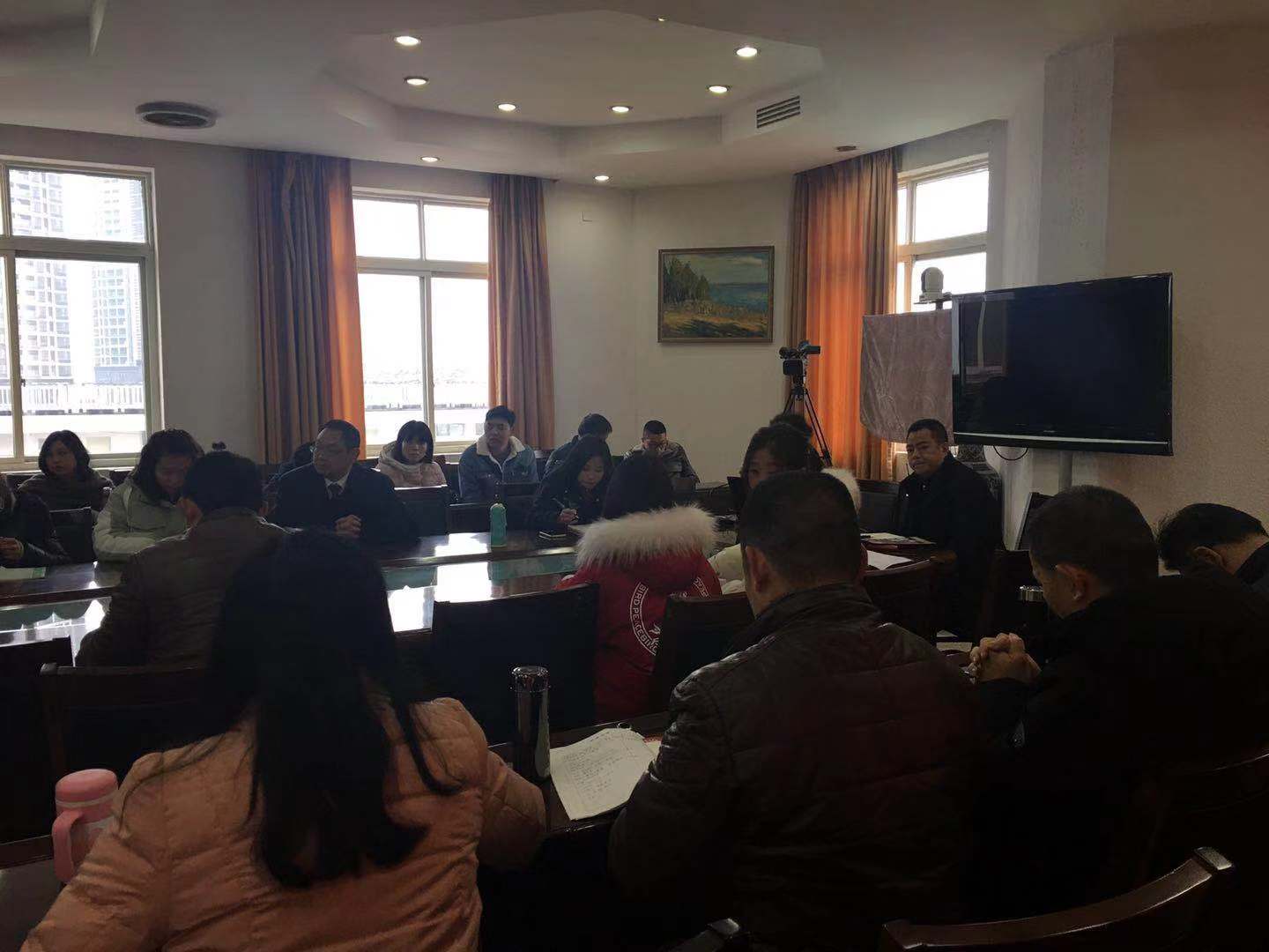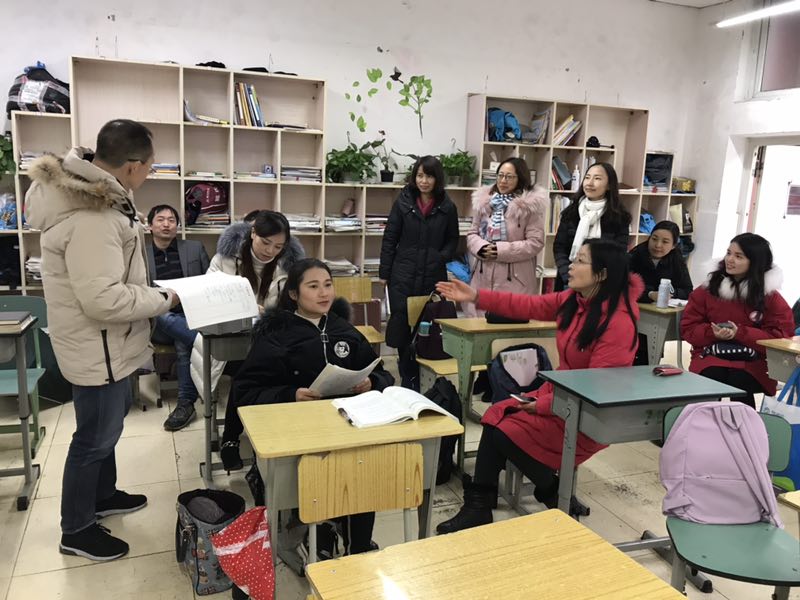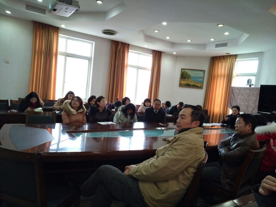 谭校长向全校教职工介绍新到我校任职的张礼洪书记(右5)和张健副校长(右6)