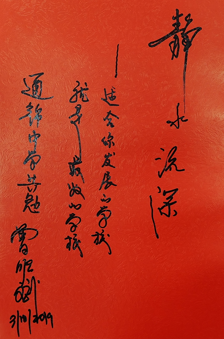 座谈结束后,曾唯斌教授应邀为我校题辞。访问活动很短暂,但但却建立起了通锦中学与美国路易维尔大学的友谊,也将进一步坚定我校生涯规划教育和国际理解教育合作的信心,并致力于培养更多具有中国情怀和国际视野的时代新人。