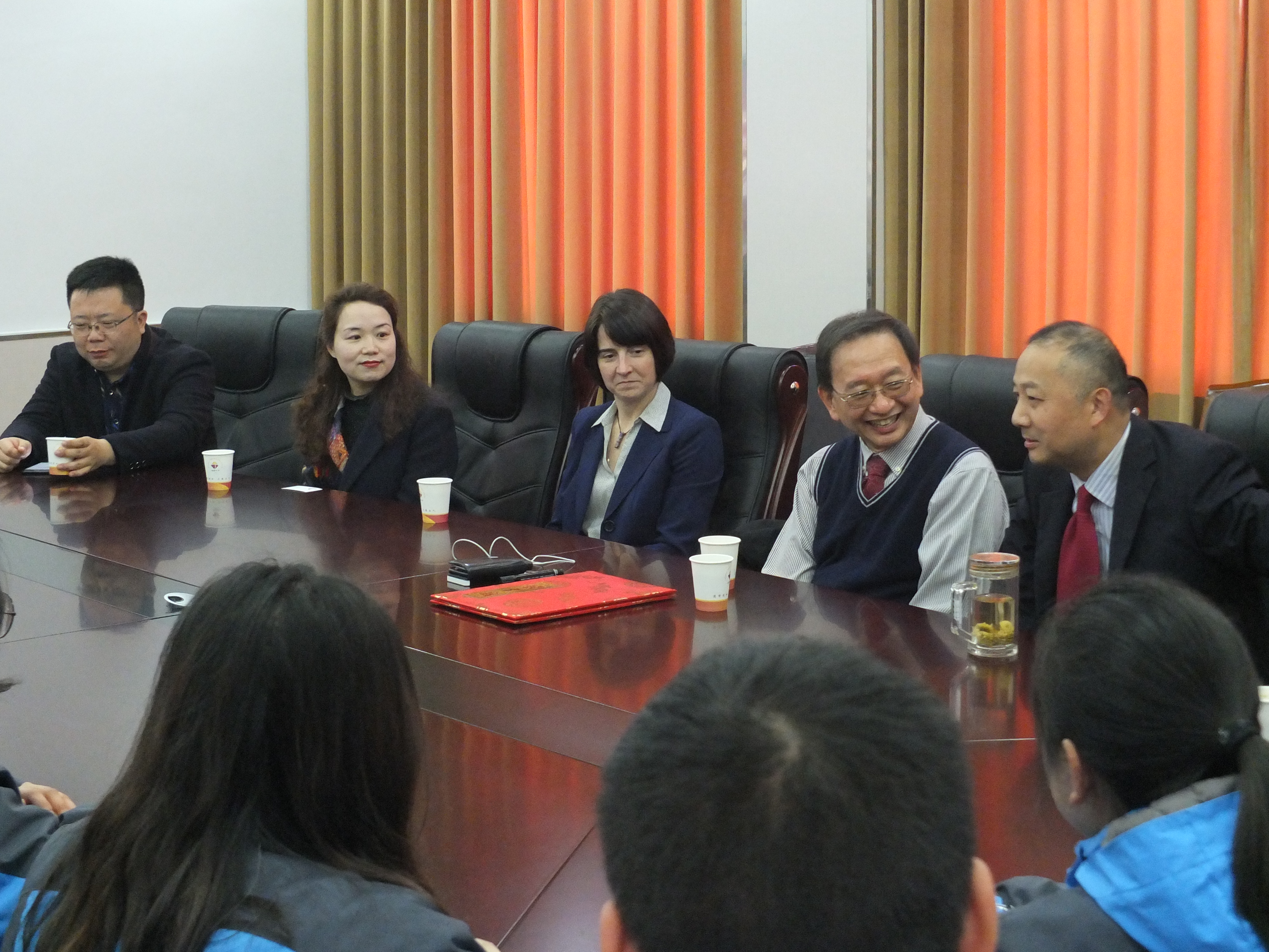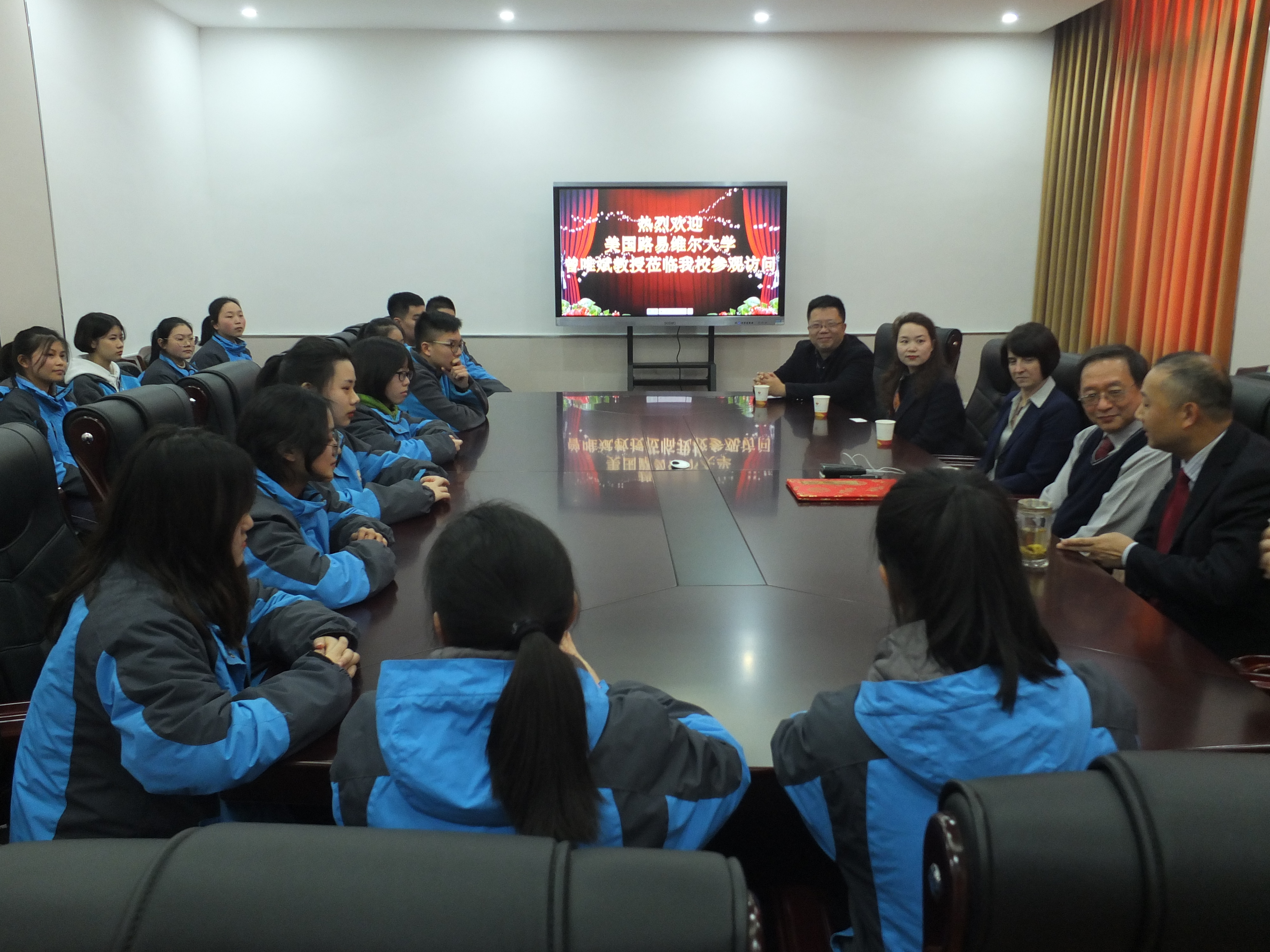 随后,双方一起到综合楼三楼会议室进行了交流。谭校长向客人介绍了学校的历史文化和国际理解教育的情况,曾唯斌教授和随行的Alice女士则向高二年级的20名学生介绍了美国路易维尔大学(University of Louisville)和特兰西瓦尼亚大学(Transylvania University)的办学背景、专业设置、专业课程、专业发展前景、国际生的招生条件等情况。在座的学生对曾教授介绍的项目都产生了浓厚的兴趣,相信在不远的未来我校会有更多优秀的学子进入美国的高等学府深造学习。