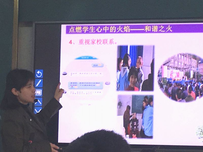 主讲人陈静老师是成都市优秀班主任,所带班级多次荣获不同级别的荣誉,2016年参加金牛区班主任技能大赛获得特等奖。陈老师从治班策略、主题班会和家长会三方面分享了她的感受和具体做法,语言朴素、条例清晰,处处充满了德育智慧,分管领导陈力副校长最后做了点评总结。