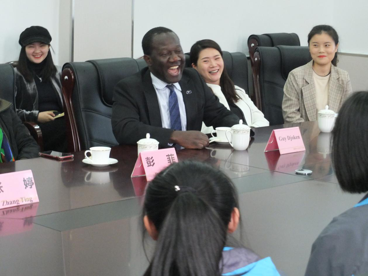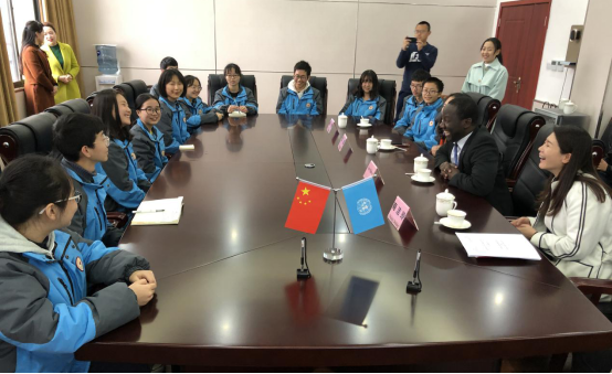 交流会上,谭校长向客人表示了热烈的欢迎,并向客人介绍了学校的产品——通达课程,特别是学校的国际理解教育课程体系。Guy Djoken先生向谭校长以及通锦中学表达了问候,并向与会人员介绍了联合国教科文组织和平中心的职能和主旨。他说:联合国教科文组织和平中心是联合国教科文组织俱乐部、中心和协会联合会的核心组织,致力于促进推广教科文组织的理想和愿景,将新一代年轻人培养成和平缔造者。他向大家隆重介绍了国际模拟联合国项目(IMUN-International Model United Nations)。这个项目为14——22岁的青少年搭建为期两周的学习交流平台。在这期间,学生代表们通过研究全球社会当前的问题,思考和探讨解决方案,从而培养全球视野,树立多文化、多种族间良好互动交流的观念,训练学生在互相尊重的基础上表达自己观点及解决冲突的能力,培养学生的国际化领导才能。