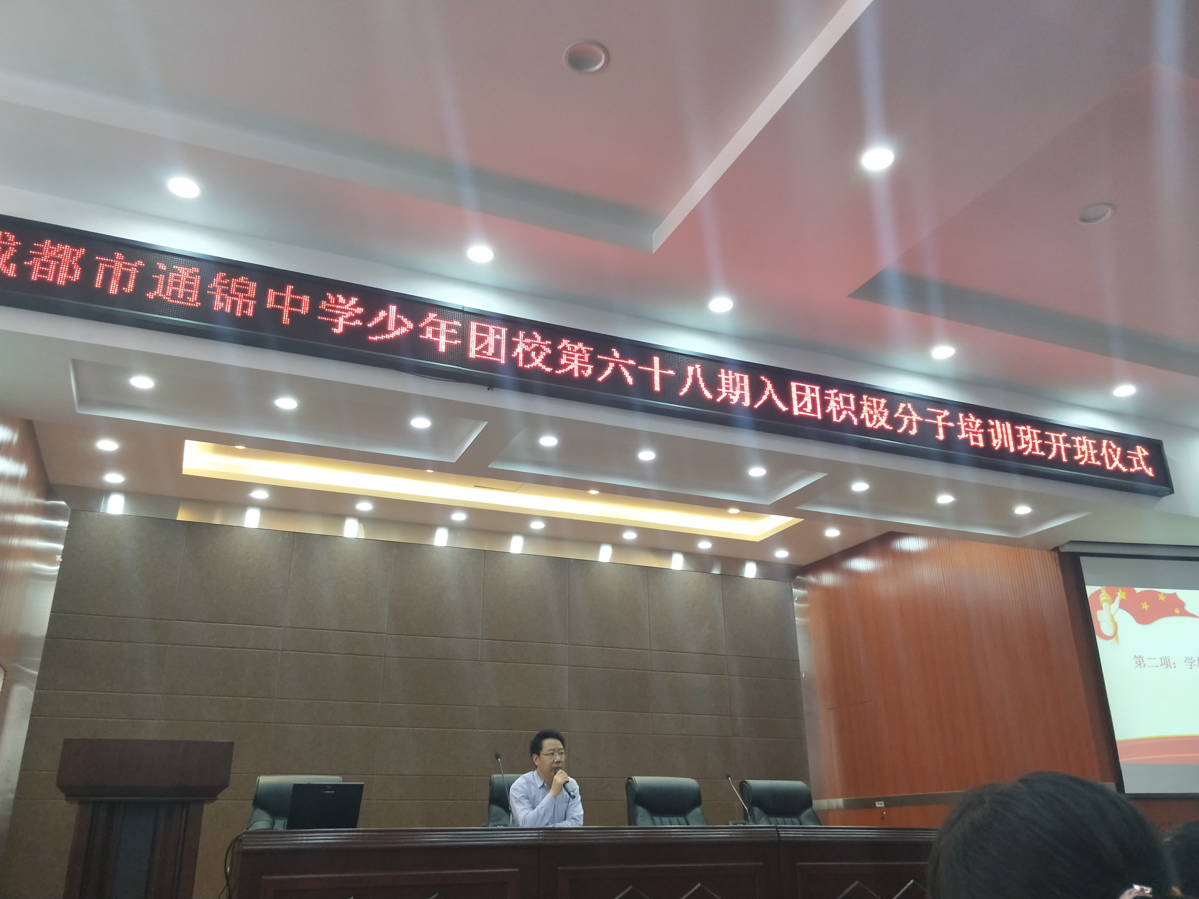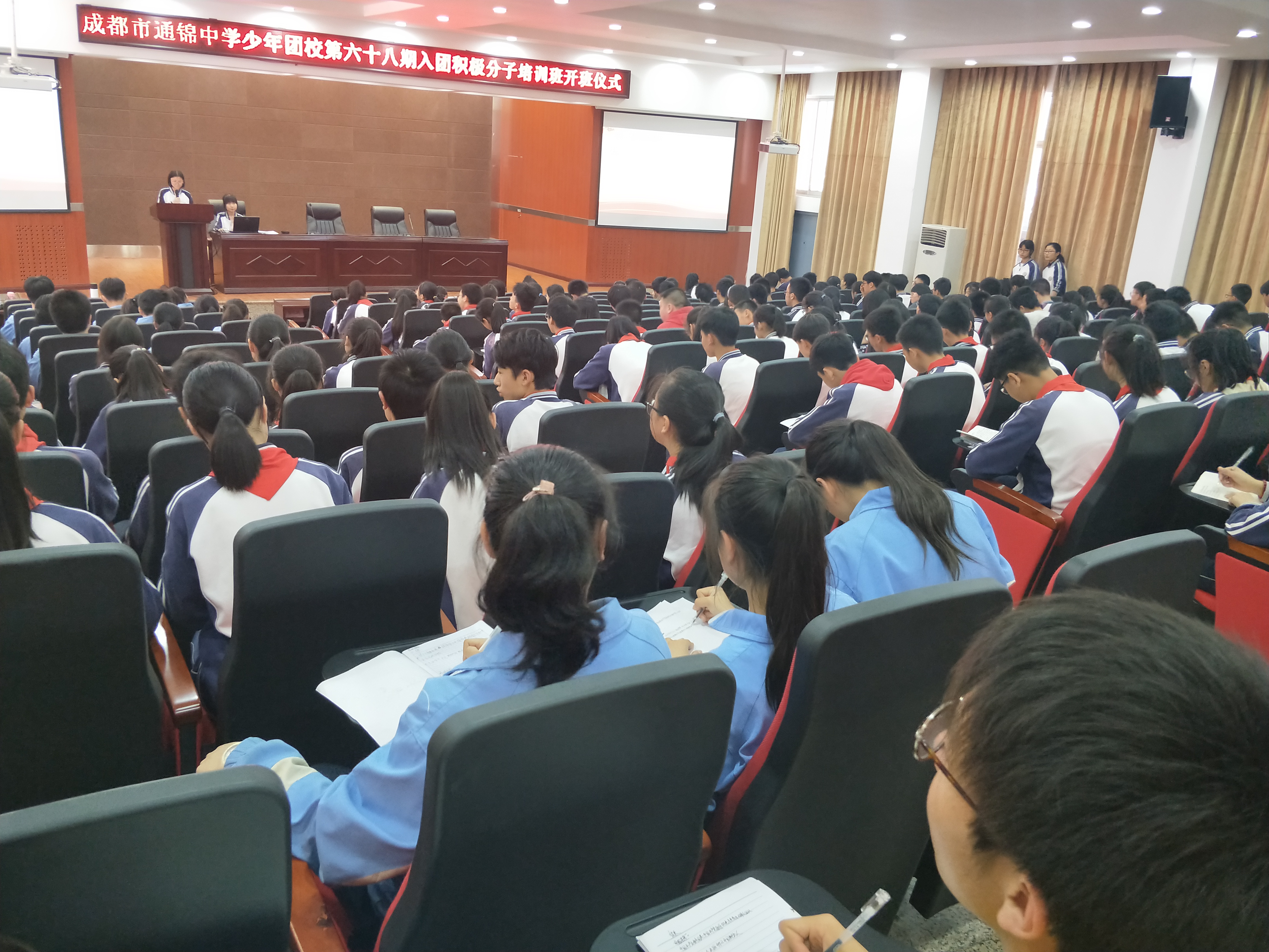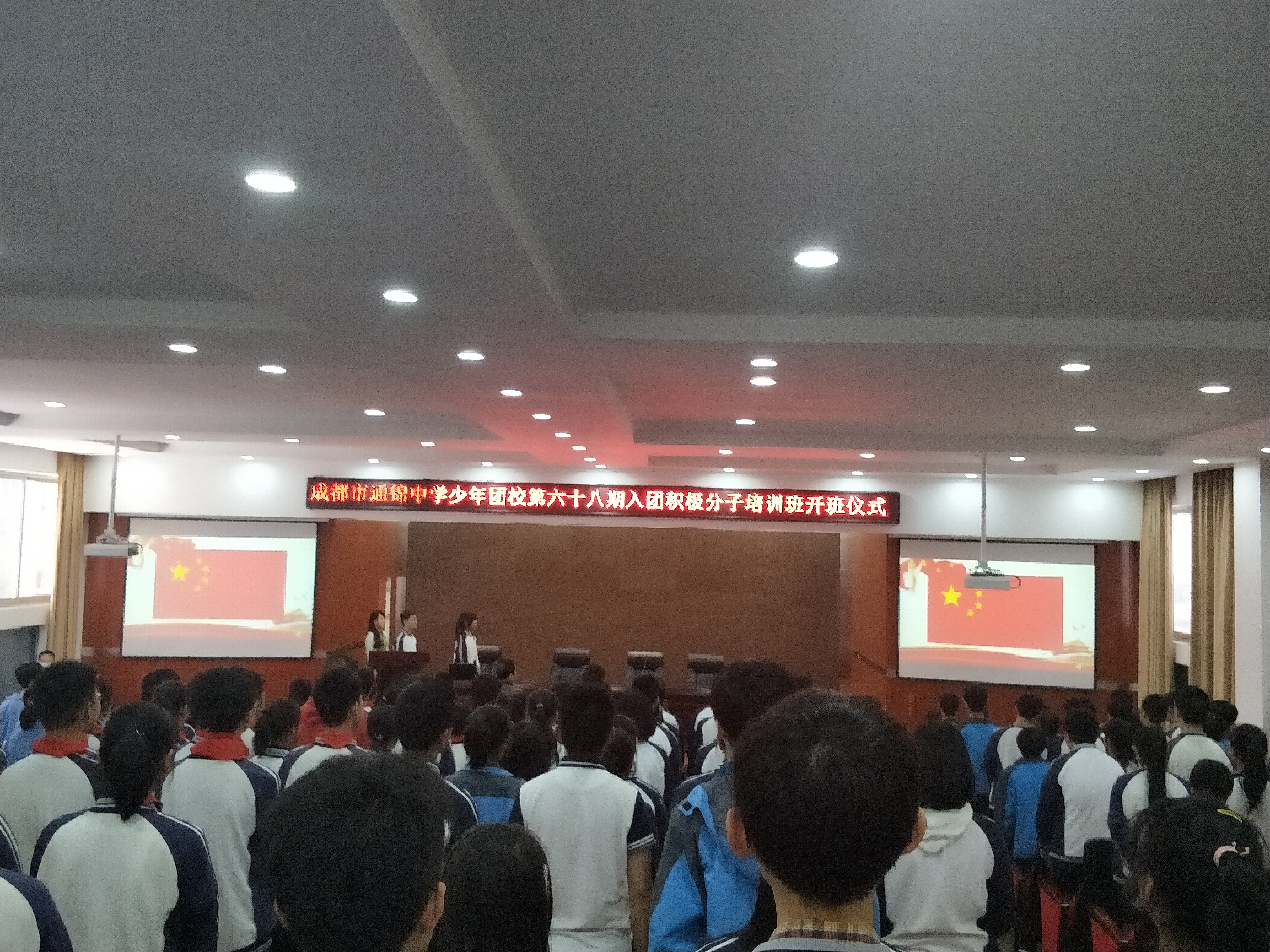 2019年5月10日星期五中午12:50,通锦中学校来自初二初三高一高二四个年级共163位同学,齐聚报告厅,参加少年团校第六十八期入团积极分子培训班的开班仪式。