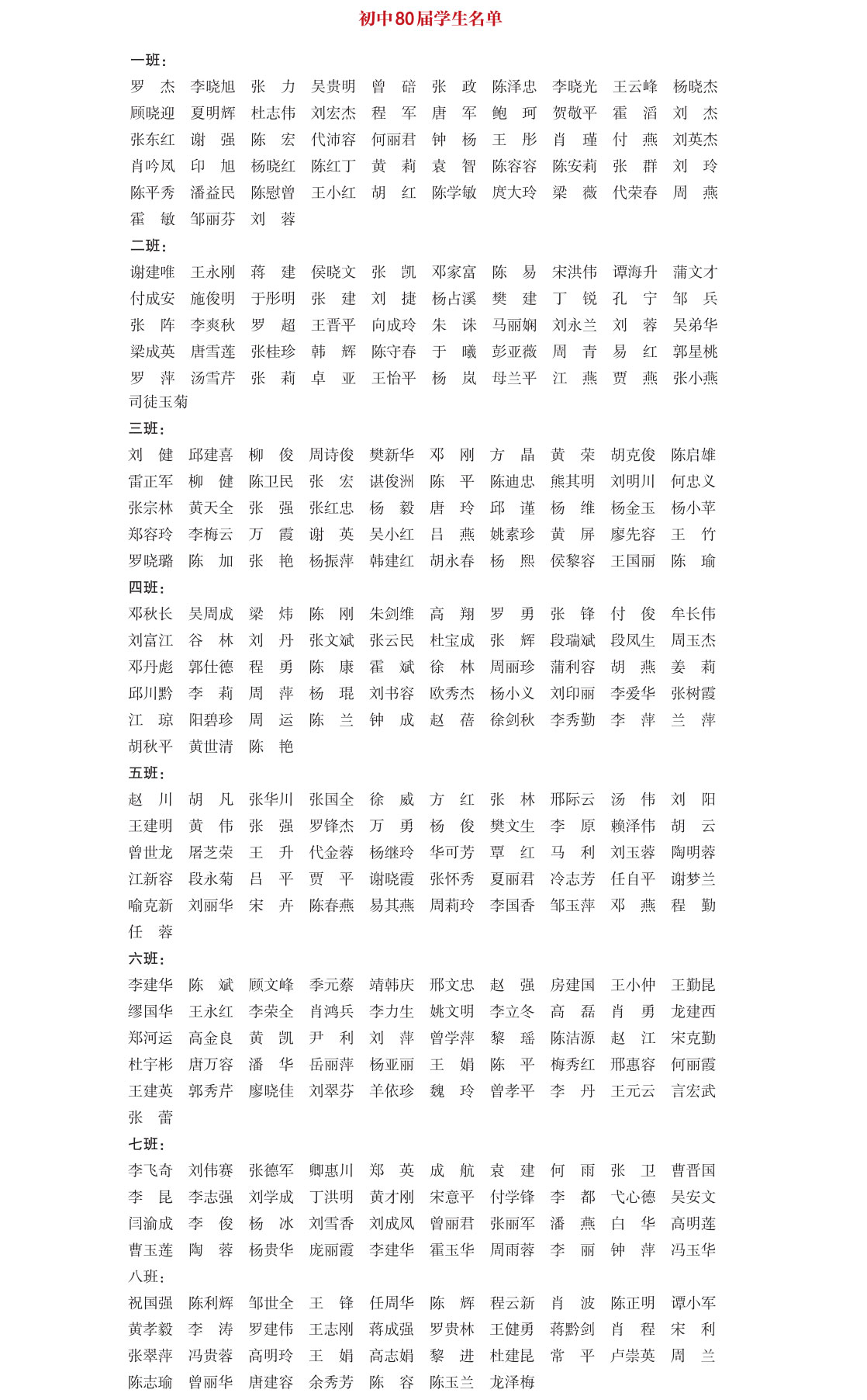 初中80届部分学生名单