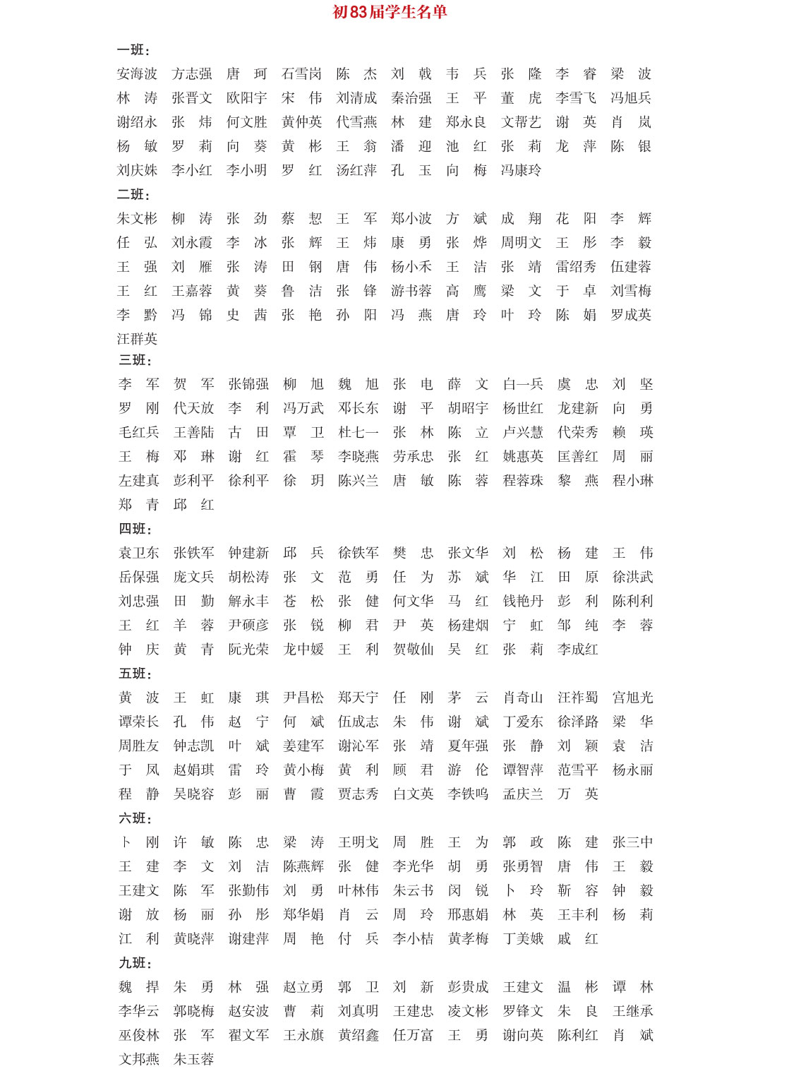 初中83届部分学生名单