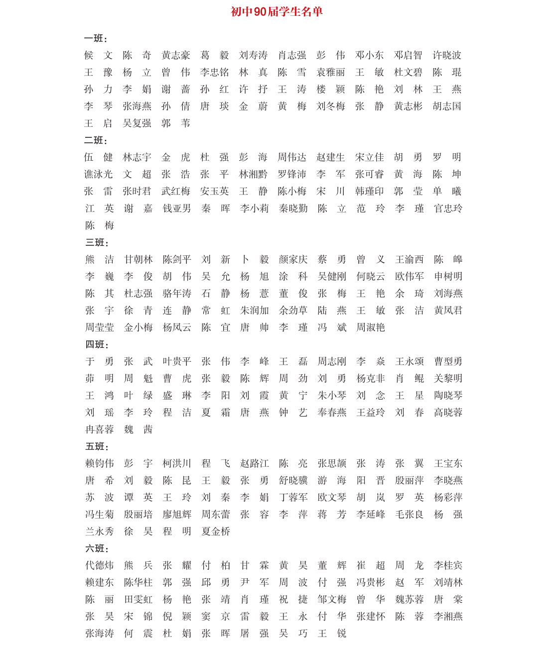 初中90届部分学生名单
