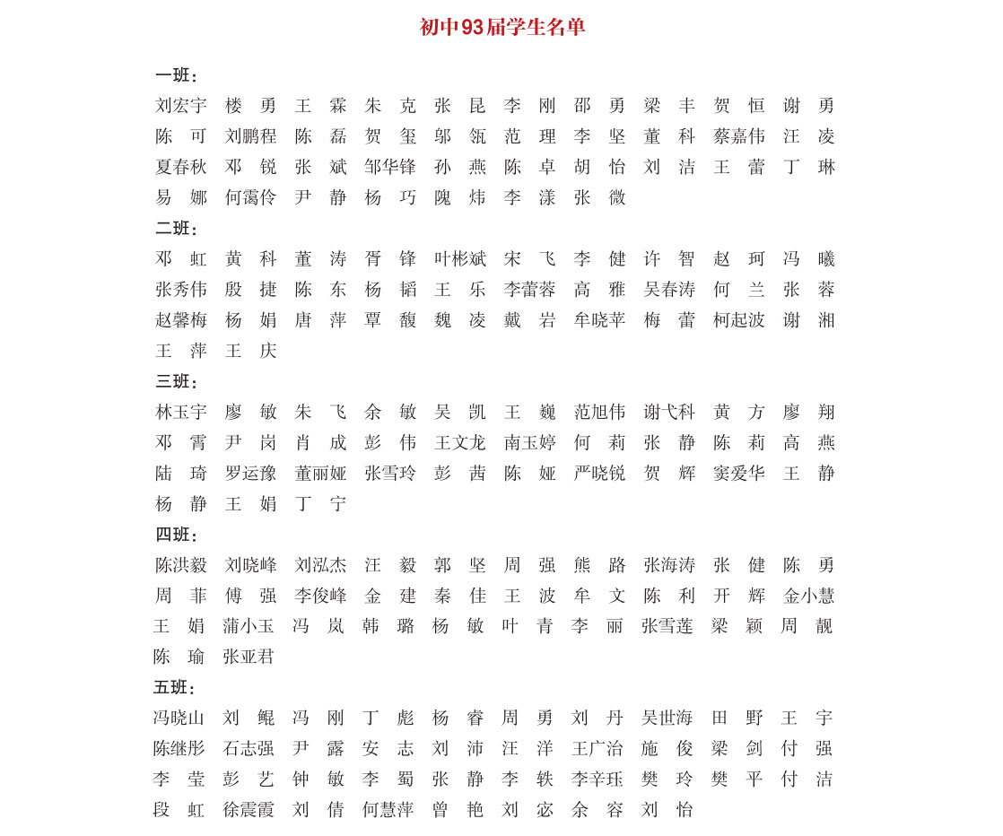 初中93届部分学生名单