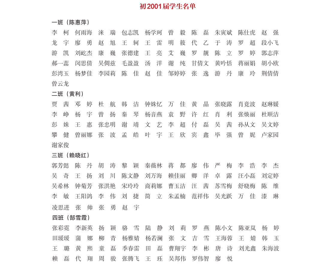 初中2001届部分学生名单