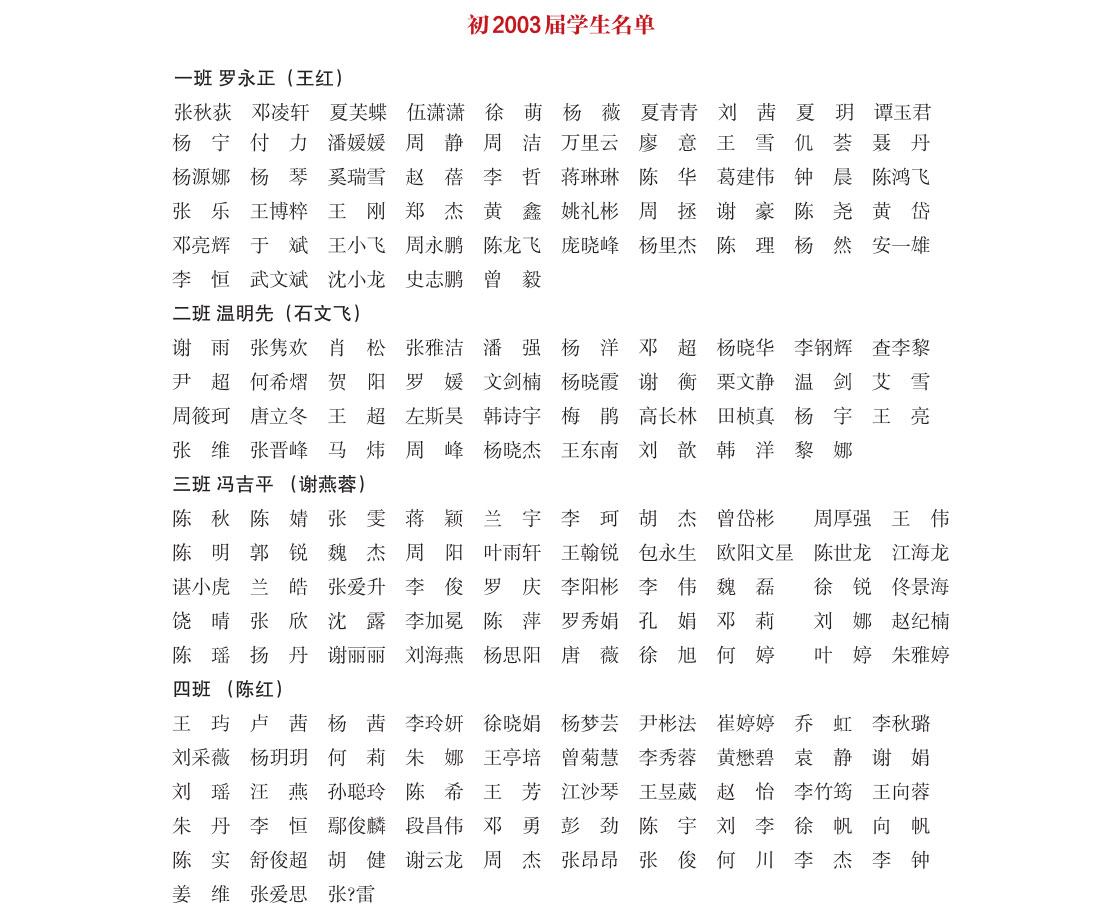 初中2003届部分学生名单