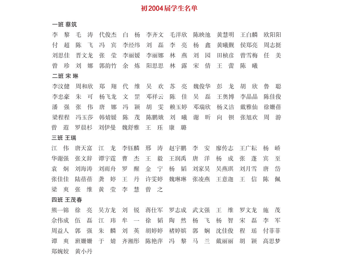 初中2004届部分学生名单