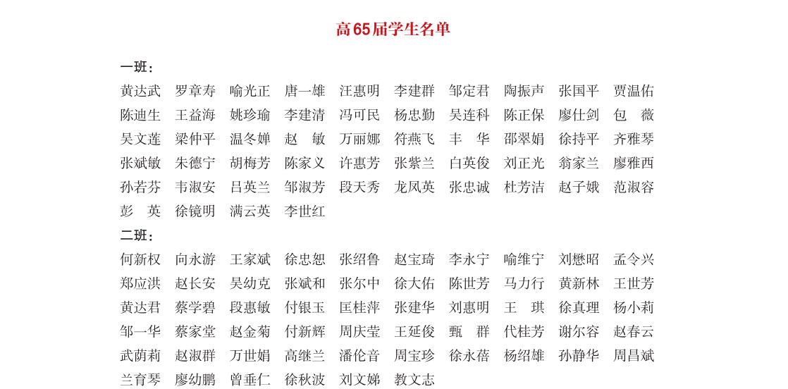 高中65届部分学生名单