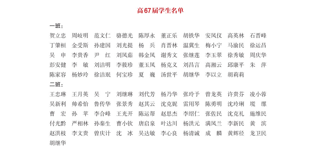 高中67届部分学生名单