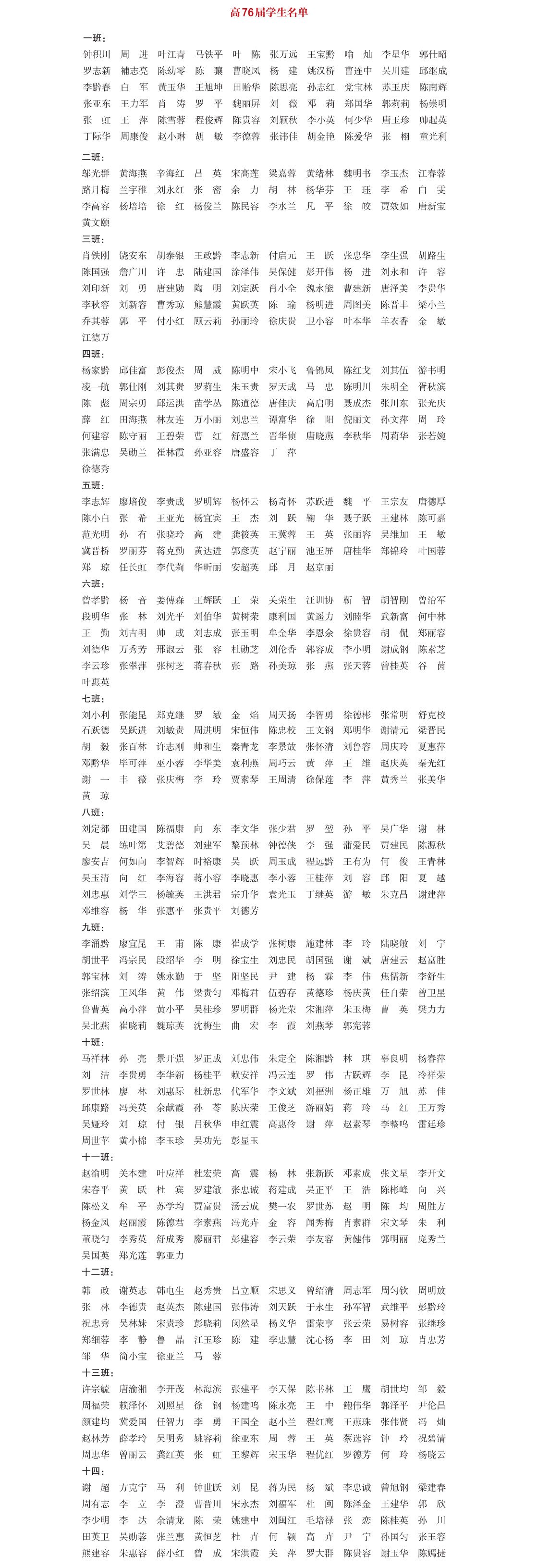 高中76届部分学生名单