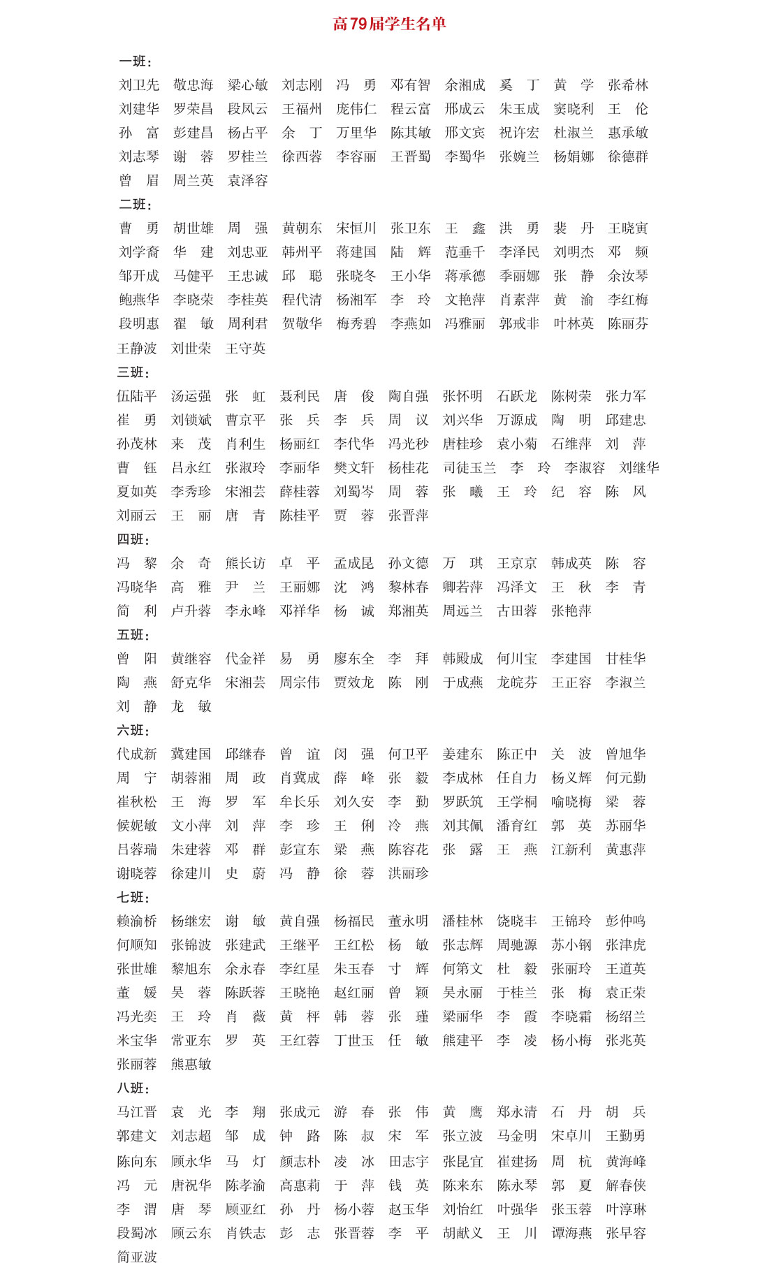 高中79届部分学生名单