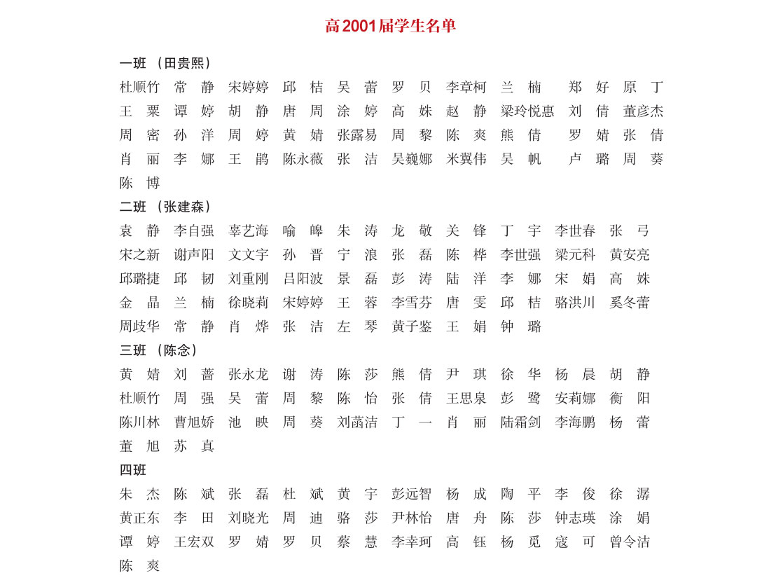 高中2001届部分学生名单