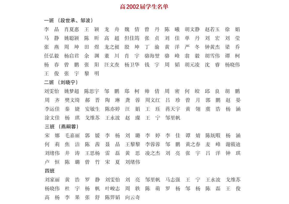 高中2002届部分学生名单