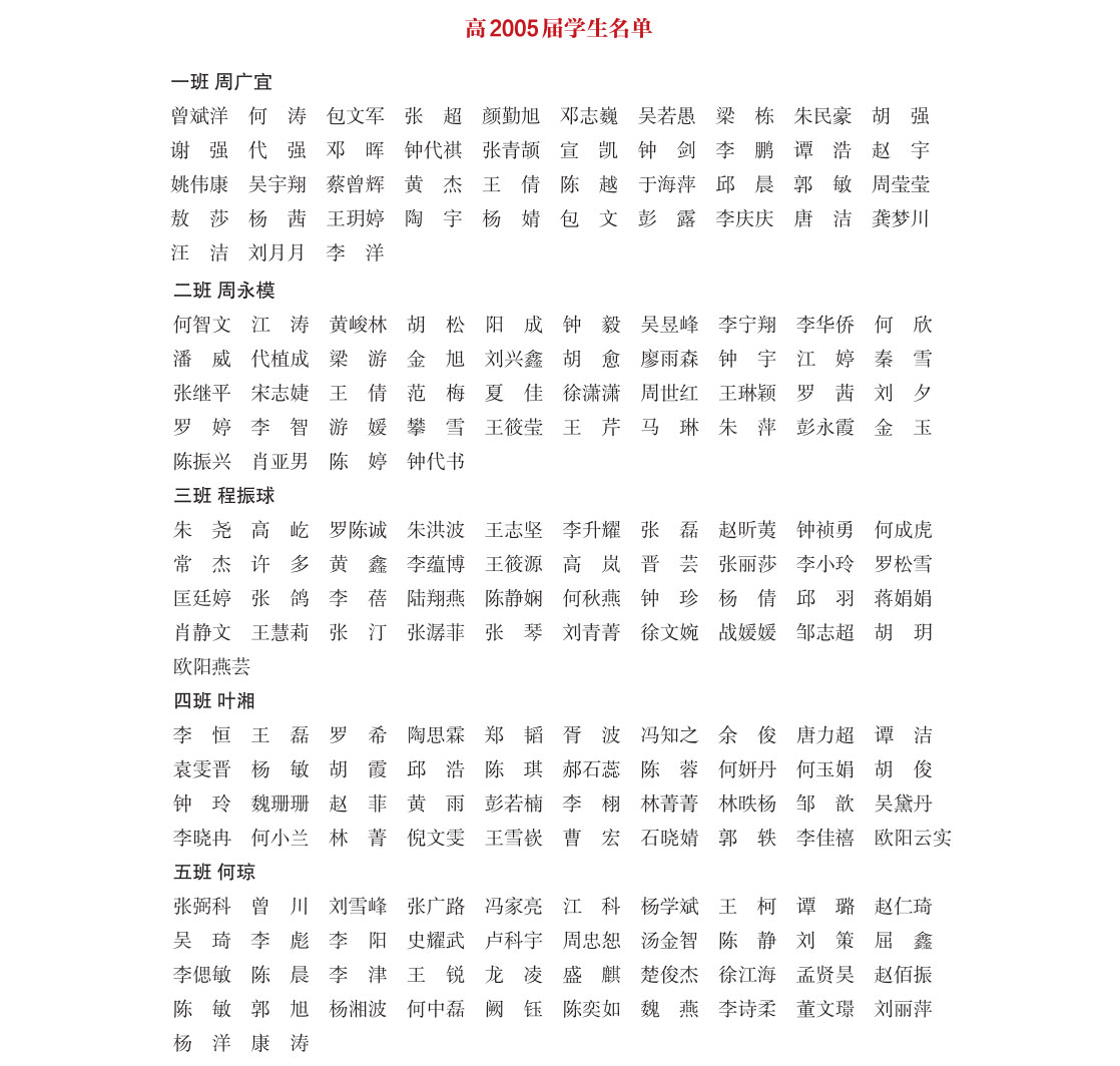 高中2005届部分学生名单