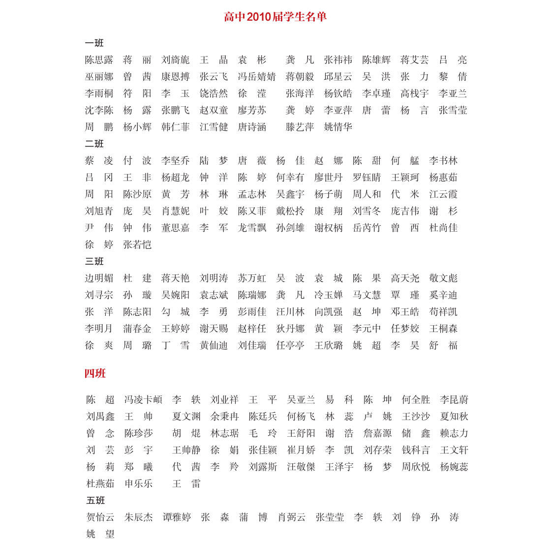 高中2010届部分学生名单